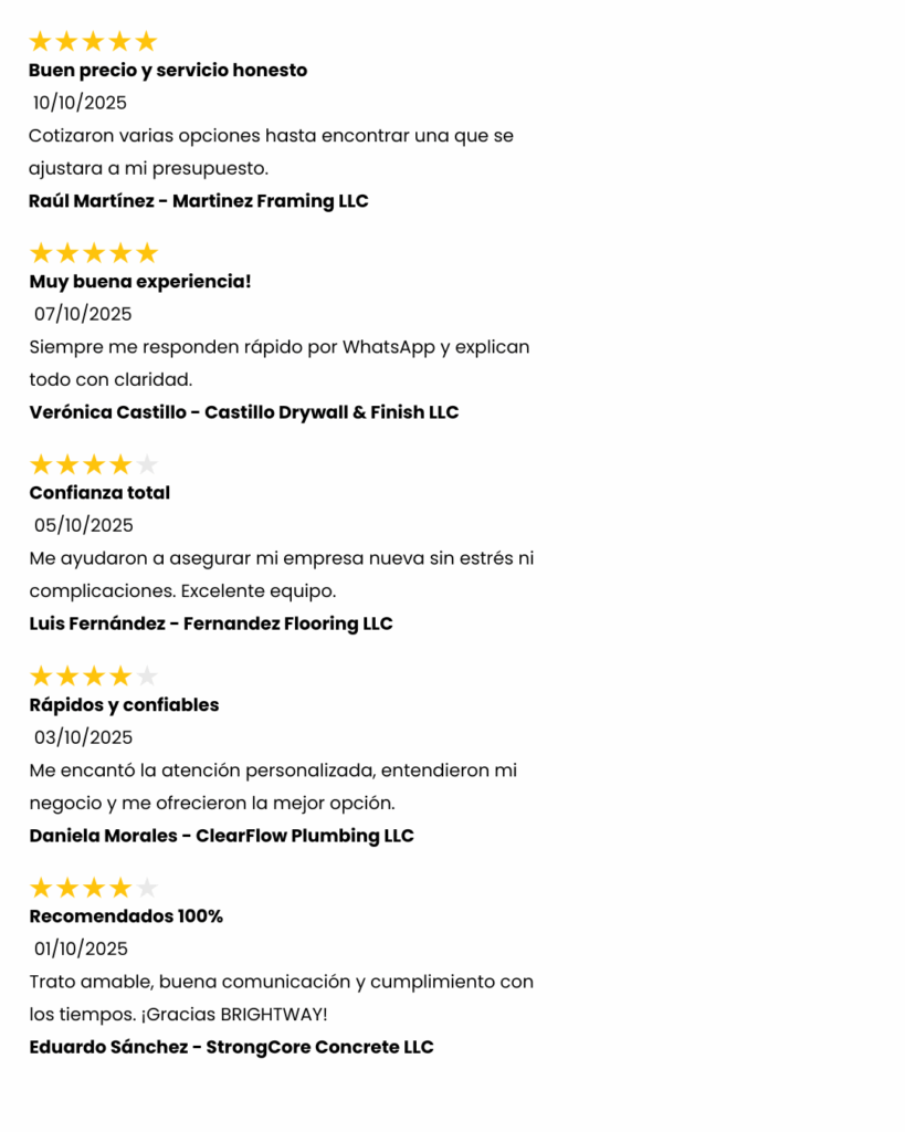 - ¿Quieres saber solamente cuanto cuesta y poder empezar con tu compañía de construcción?, Brightway te puede ayudar con la creación de tu compañía hasta la obtención de tus seguros.